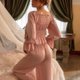 缎面睡衣套装,短裤与长裤款式可供选择。共有白色和粉红色。此款式无内衬胸垫,质地柔软,穿着舒适。