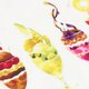以各种口味的圣代为设计灵感,包含酸甜草莓、浓郁巧克力、清爽密瓜等。这款幽默又甜美的设计,传达了“甜点是另外的胃”的消息。边缘采用精细的千鸟缝线工艺。