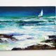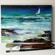 Seascape Painting. Sailboat Abstract Wall Art. Landscape Impasto Art.