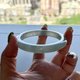 冰糯,一段接近冰种起光,透手影,几没有结构感,完美镯,没有纹裂没有棉团。