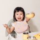 .拥有一体式3D立体承接槽,约45度的深兜口径 + 软性硅胶材质贴合宝宝身型,使食物完美不漏接。