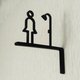 It is an L-shaped protruding shower room sign that can be mounted on the wall. The mark has a simple design with a little roundness, making it easy to match the interior.