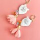 以花瓣形状的雪纺纱制成的流苏,交织着淡粉与鹅黄的渐层色彩,营造出温柔的氛围。