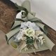 日本大地农园顶级永生玫瑰花(浅绿&深绿)、日本大地农园顶级永生绣球花(白)、永生白色蓬莱松、米色芒草、浅黄水晶花、骨架叶、浅绿兔尾草、深绿色木满天星