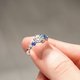 这颗戒指的美丽,灵感来自于顾客的故事以及星空与星云的无尽浩瀚。经典的《六爪镶》工艺,将蓝宝石与白钻以不规则的方式排列,仿佛在指间点缀出一片属于您的星空。