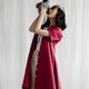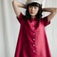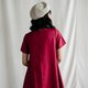 A-line Linen Dress with Shell Button in Ruby - 洋装/连衣裙 - 棉.麻 红色