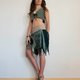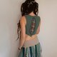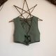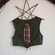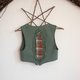 短版鼠尾草绿/橄榄绿棉质背心。背面饰有手缝细节与法兰绒布贴片。正面以两条钩针编织的细绳系合。