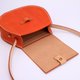 这是款亮橘色的包,但是用的是菊花钉装饰的四合扣,再一次客人的定制中,我们采纳了客人的建议用了复古菊花钉,仅仅只是换了一个扣件,整个风格就完全不一样了,从原来复古可爱变成了简约时尚,所以说是客户缔造了这款新的斜背包。