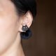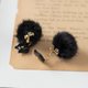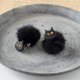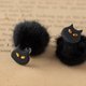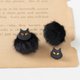 软陶制的黑猫与毛球组合的耳环。