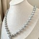 纱织小姐甄选出52颗7.5-8mm天然色日本海水真多麻,将其与2mm银色琉璃珠连缀,截成约58cm长的满天星长毛衣链。银色镶钻的合金电镀18K金搭扣可以搭在任何两颗真多麻珍珠之间,也可以搭载心形搭扣上,随意调节长短,也可以截成两圈在胸前结成Y字链,佩戴效果多变。日本海水真多麻稀有美好,通体银蓝灰色,表面呈现出难以名状的炫彩色调,自然光下每一颗都分别呈现出各自的七彩光芒炫彩,皮光细腻,微瑕炫彩,似镜面可照出人影,美得不可方物,仅此一件。