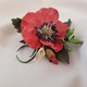 皮革胸针 红色罂粟花 献给她或他 手工皮革饰品