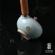 - 【汝窑-知己侧把茶组】 温润天青色,满布蝉翼细纹,浑然天成,自然开片之美。实木壶把,完整保留原木自然弧度与天然纹理,持握舒适防烫。器身“藏”字印章,手工描金,匠造珍品藏器。