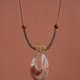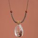 手工绳编项链,橘咖色与深灰色绳编颈绳,穿制战国红玛瑙隔珠。可拉伸调节长短。