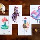 ‘时装女孩穿上黑色的华美衣裳,会走进谁的梦境里呢?’ 【产品规格】 尺寸:10.5 X 14.8 cm 材质:纸张 / 200磅素颜纸 【注意事项】 因拍摄及个人电脑萤幕上呈色之差异有所不同,请以实际收到的商品为准。 产地/制造方式 产地台湾