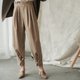 - 了无牵绊 | 浅咖色 纽袢设计打褶两穿长裤 束腿阔腿宽裤西装裤