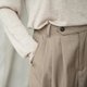 裤子前片三条褶裥更加复古,加长的腰头增加细节