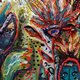 这幅画描绘了一个超现实的花园,花朵、茎干与抽象的面孔融合成一个充满观察与存在的生命系统。在盛开的形态之间,出现了类似眼睛的图案与受面具启发的造型,暗示着觉察、记忆以及自然作为一种有感知力量的主题。这件作品邀请观者进入一个花园也会回望的世界。