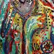 作品以玻璃为基底,融合了彩绘玻璃效果与富有表现力的油画层次,创造出晶莹剔透的色彩深度与触感丰富的表面对比。粗犷的轮廓线、半透明的色彩过渡以及纹理丰富的颜料应用与光线交互,增强了作品的视觉强度与象征意涵。