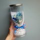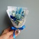 .蓝太阳玫瑰为主的手绑迷你小花束装进透明圆筒花礼