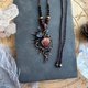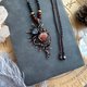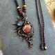 使用太阳石 及 月亮石,配以纯铜线,以绕线方式手作而成, 然后再加上复古做旧效果, 再抛光处理令花纹更具深度和对比.