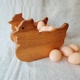温润柚木制成的蛋架外型可爱, 风格简单又不失趣味,
