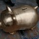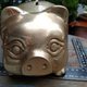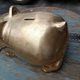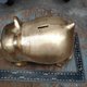 早期台湾外销老铜猪存钱筒扑满摆饰(大)黄铜金属底盖旋扭