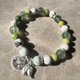 Lica Accessories 选用约9mm绿草莓晶+8mm白松石+8mm绿海纹石+7mm蛇纹石+纯银配件制作本串手链。图片手链手围约16cm。可视乎水晶素材库存,再根据顾客手围进行订制。