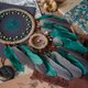 这款捕梦网是您正在寻找的礼物!它由用麻绳、玻璃珠和羽毛包裹的木箍制成。