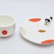 小碟中有着柴犬与猫咪爱的酱油团子与鲷鱼烧图案,盘缘有着可爱的柴犬与猫咪等着食用点心的可爱模样。