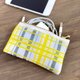 这是一款采用少见的叠缘材质,以苏格兰格纹(Tartan Check)制作的迷你小包。