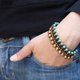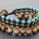 这是用黑色棉蜡线编织而成的手工编织手链,配以石头,黄铜珠和黄铜叮当铃。关闭使用铜钟