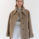 - 这是一件海军式羊毛大衣,设计带有季节性的宽翼领设计。