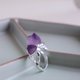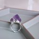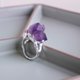 純手工製作,990銀鑲嵌紫水晶原石戒指。