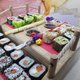 - An original tray for serving various snacks, sushi, etc. Made in Japanese style in the form of a bridge, with railings. Material - oak. Coated with Italian natural oil that allows direct contact with food. The set includes 2 glass saucers, which are placed in special holes.