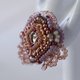 在创作小巧作品时,首先会挑选主要的装饰零件。为了让该零件能展现最美的姿态,我们会毫不间断地叠加刺绣——接着,一颗颗多彩的珠子便如窃窃私语般,构织出活泼生动的画面。