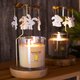 烛台底座采用台湾香樟,保留原木材质与纹路,搭配上方的金属烛座与悬吊的光源兔,可透过光源反射,变得星光熠熠。另外,也可依据喜好更换各式香氛蜡烛。(建议蜡烛高度8厘米以下)