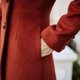 - 这款呢外套,最大的特点在于其合身收腰的大A摆,穿着效果显身材高挑挺拔,颜色也是很显肤色气质的铁锈红,偏高腰的腰封型线条更显腰部纤细,整体有一种法式精致复古感哦。