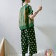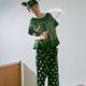 看起来穿起来摸起来都有一股清凉感的二重纱布料,在夏天是怕热人的好伙伴,圆点点是不规则的手绘感,更增加了日本和风的味道,直筒的八分版型,裤裆适中不会太高穿起来不舒适,腰头松紧带设计好穿脱,长度也可以自己穿高穿低做调整。