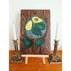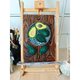 原创丙烯手工艺术作品——《金属盘上的牛油果》。