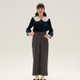 - 有别于一般丝绒容易给人一种老气横秋的印象 ,在沉静典雅的深海蓝主色中,使用了可爱减龄的棉质娃娃领。