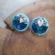 刺绣蓝色圆圈耳环。 |耳钉和夹式耳环