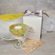 线条优美的高脚杯配上永生花和干花以果冻蜡制作而成。 中央的小玻璃杯可放小茶蜡:
