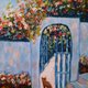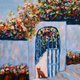 一幅田园诗般的夏日景象,将为您带来地中海的氛围:一只猫咪坐在阳光普照的希腊庭院中,坐落在洁白的拱门旁,下方是美丽的九重葛。