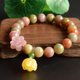 天然盐源七彩玛瑙10mm光面圆珠,珠子色彩多样,一颗珠子上或一种或双色或多彩,色彩众多,有藕色,曙色,梅染,茜色,酡颜,竹青,碧染,天水碧,柳青,缃色,秋香绿,黛蓝,黛紫,棕色等。手感冰润,柔滑细腻,搭配天然非红玛瑙五福花双面雕刻件做手串主体,天然琥珀金绞蜜莲花雕刻件搭配天然碧玉圆珠做手串垂坠饰品。整体明艳得体中又有着温柔缱绻,古典雅致里又还有别致与可爱。