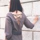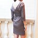 V领直身裙配色腰带小露背 绳带 洋装 连身裙 连衣裙 灰褐色 茶色 灰啡色 欧美线条 秋冬