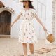 面料垂顺舒适,裙摆上点缀着一棵一棵的植物,手绘植物插画图鉴可爱中带着文艺,是非常简约实穿又好搭配的款式,不知道穿什么的时候这样一件式的连衣裙就ZUI合适了哦~ 裙子前胸有褶量,对身材限制较小,但是更适合胸部比较丰满的女生穿着哦~