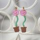 【新系列】粉红花痴耳环,棕色盆栽,自由自在。
