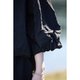 圆领,后面开叉,一粒橘红纽扣内向扣,长发不勾发,纽扣的外面,我们用一块白色的布料,剪出一朵小花的模样,再用黑色的线勾勒出经络,一点巧思,也是一点属于女孩的小情绪,点到为止的克制,并不打破黑色的纯粹与高级。