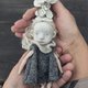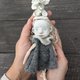 这个娃娃体型娇小,约6寸高,但每个元素都充满细节和灵魂。她的头部由聚合物黏土制成,精致的五官描绘出柔和宁静的表情。她可活动的头部和腿部赋予她生命力,仿佛北方的孩子随时可能复活。娃娃的身体由纺织品制成,填充了天然羊毛,赋予娃娃温暖舒适的触感。她那由100%羊毛编织而成的柔和灰色连身裙轻柔地包裹着她纤细的身躯,可拆卸,优雅的纸浆头饰也是如此。她帽子上的繁花似锦,仿佛被冬日的气息裹上了一层薄霜。天然的丝带顺着她的肩膀飘垂,如同雪白的光芒。所有使用的材料均为天然、环保且富有生命力,仿佛大自然创造了北方的孩子,是为了提醒我们冬日世界的精致之美。