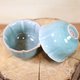叶老师的哥窑冰裂,烧制手法成熟,透如湖水的蓝绿色,配上细致的开片,在不同光源下时有时闪亮,有时青郁,呈现土与釉的一种交融感。而细密的开片再均匀与茶汤接触后,纹理渐深,更显润泽。